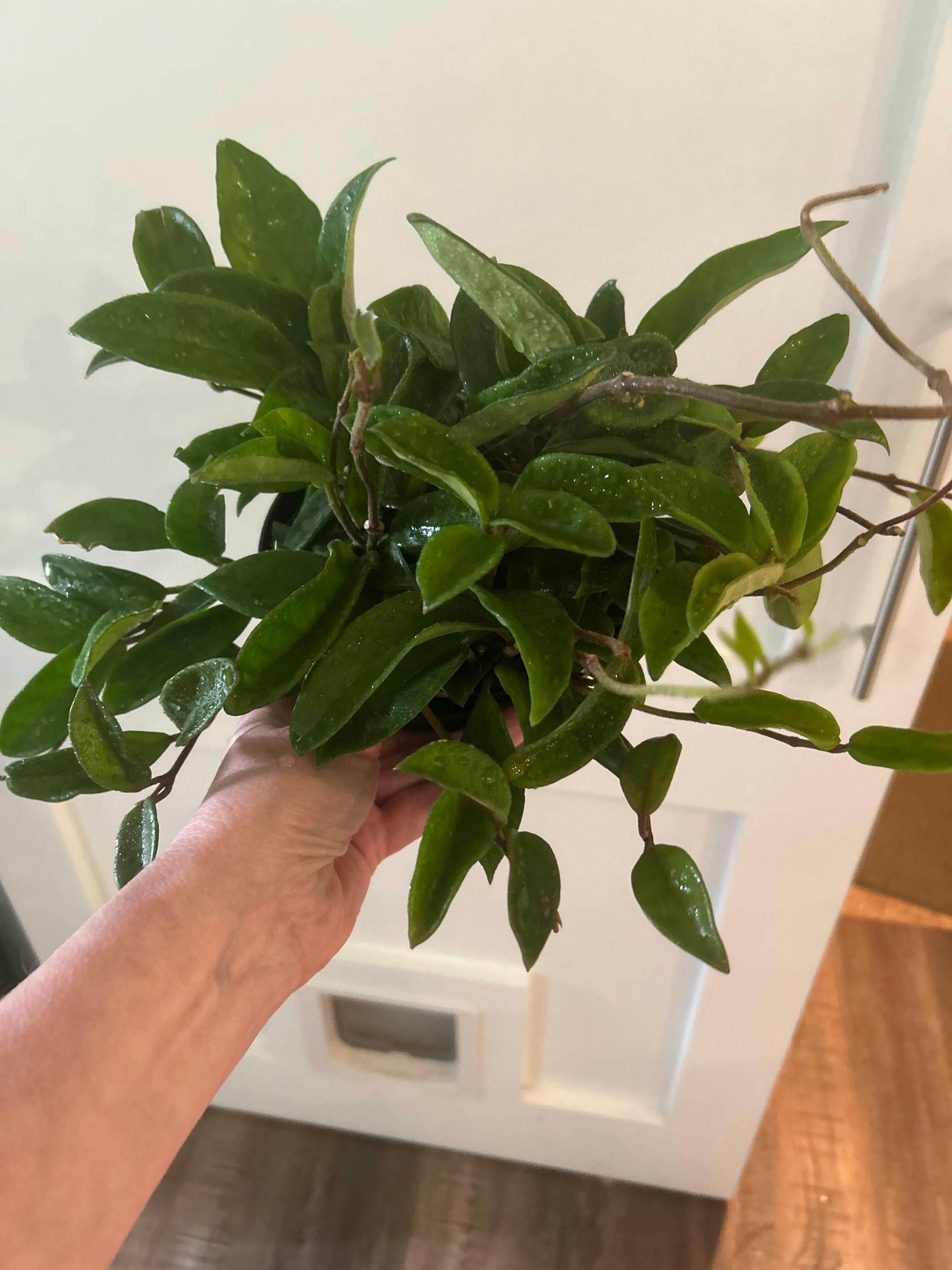 Hoya Carnosa are some of the most commonly found Hoya in the world. Most of our favorite cultivars, common and uncommon, have H. Carnosa genetics somewhere in their family tree. This variety has long epiphytic vines with thick waxy emerald green leaves. Once they really begin to vine, we suggest planting into a hanging basket so the vines can spill over and cascade.